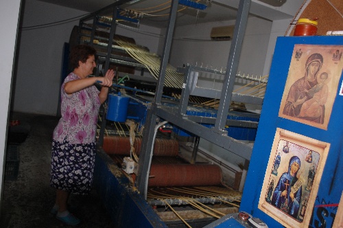 Se continuă, de asemenea, lucrările de construcţie la hala de materiale a fabricii, unde sunt depozitate lumânările produse și materia primă pentru realizarea acestora. Tot aici se primesc și se cântăresc resturile de lumânări aduse de la parohii.